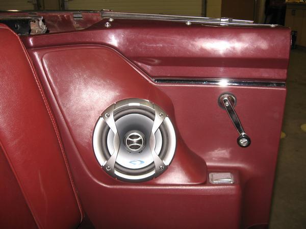 This barracuda almost didn't get done by me, the first installer didn't want to touch it. Thank you :-) I like Clients that are open for new ideas, he wanted better sound in his convertible but only had one factory location. So i made some fiberglass rear side pods and made a custom mounting plate in the dash to hold the two 4" front speakers. Take a look.
